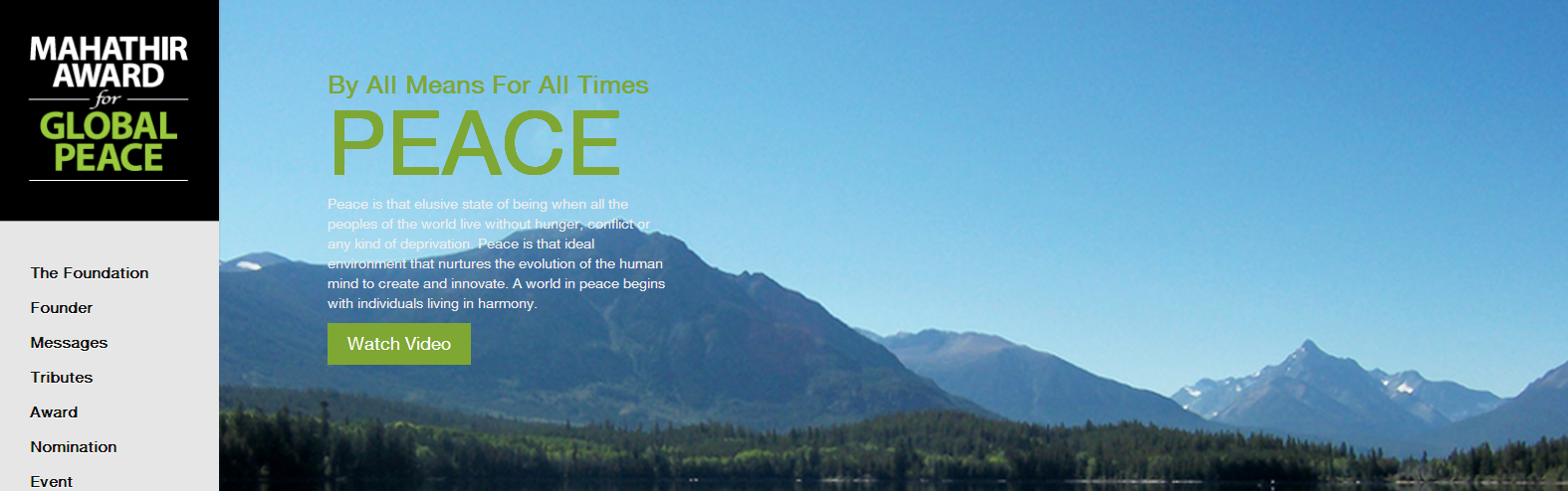 Now this is just cool looking. The American Advertising Awards “represent the true creative spirit of advertising by recognizing all forms of advertising, from all types of media, created by all sizes and types of entrants, from anywhere in the country.”What makes the illustration featured in their header so cool isn’t just its unique look, it’s all the speech bubbles and different people that seem to represent and illustrate the things AAF is celebrating with this awards program. - Mahathir Peace Award