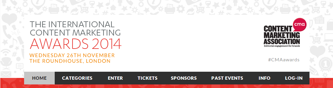 The AV Awards celebrate excellence in the Audio Visual industry and knowing that one realizes why this header is so awesome. The simple graphic and brief information in a sans serif font on the left, along with the black background, allow you to focus on the coolest part about the header: those cool wavy lights. Not only are they visually interesting and appealing, they’re also subtly reminiscent of light and sound waves. Get it? How cool is that! - The International Content Marketing Awards