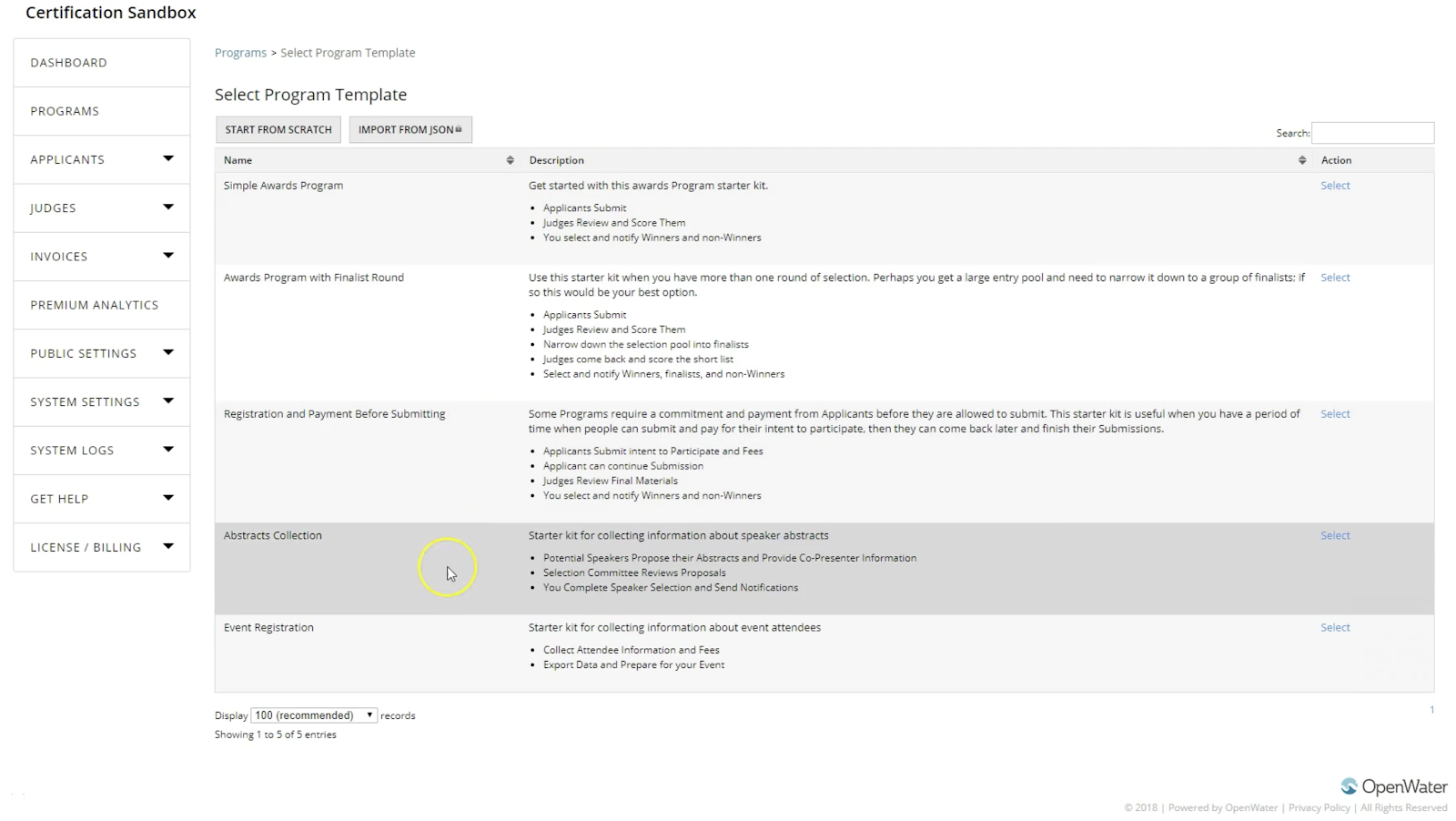 Our abstract management system, OpenWater, can build and store templates for recurring events, minimizing the friction and tedium for your team. The first thing you’ll do in the OpenWater software after setting up your organization’s account is to click on “add program” and start setting up your conference or meeting.