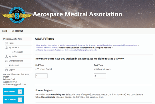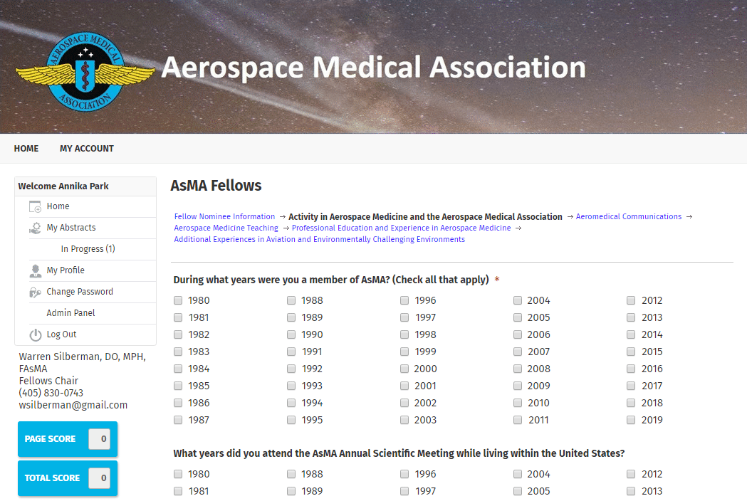 When Aerospace Medical Association (AsMA) first came to us with a problem they were repeatedly facing in their Fellowship applications, we had no idea how big this project would become. Every year, AsMA selects Fellows from a pool of active members who have made an outstanding contribution to aerospace medicine, aeronautics, environmental health, etc. The applications are reviewed on a points system, meaning applicants fill out the application with a goal of reaching 130 points to be deemed eligible for the program. Every answer field is cross-referenced with a points calculations sheet available on their website to come to a tallied total.
