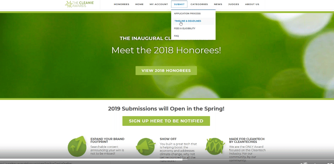This is the Honorees page used by one of our clients to feature their winners.