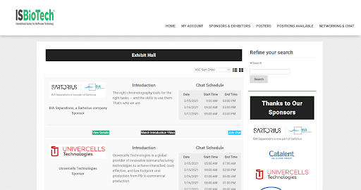 ISBioTech has sponsors listed on the right side of the page for their 10th Spring Meeting Redux: