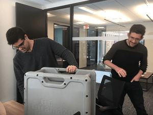 Above: Kunal and Dan inspect the Amazon Snowball upon arrival.